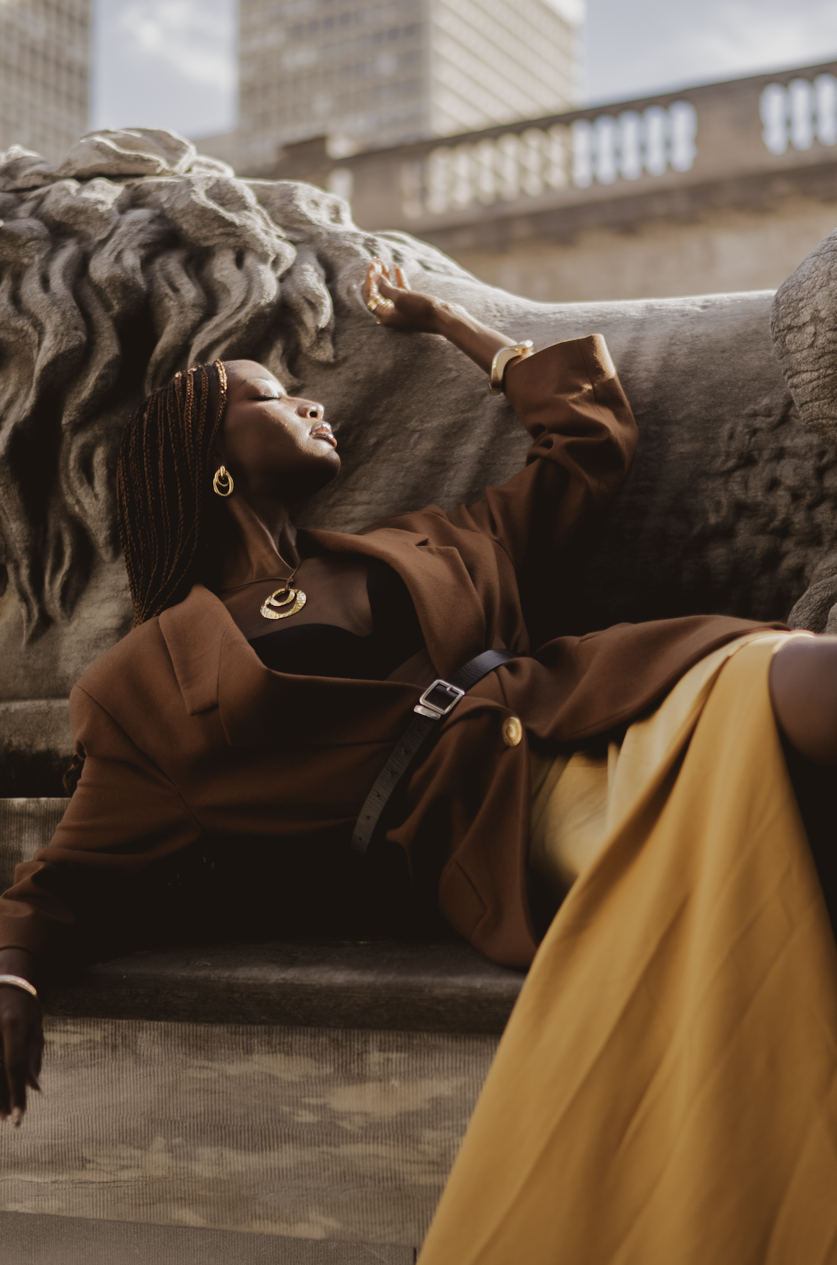 In Chinatown, Philly, artist and designer Zoe Molina (Zola Blue) becomes a living canvas, effortlessly blending art and identity. Styled in her own vibrant creation, she channels the spirit of Basquiat—an artist both creator and creation—against the textured backdrop of the city.